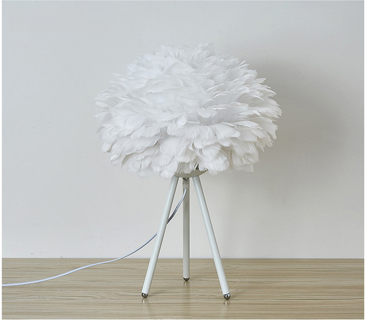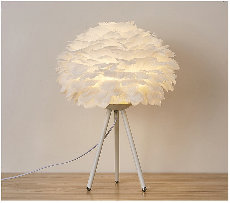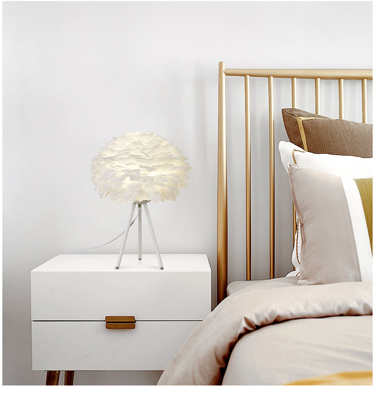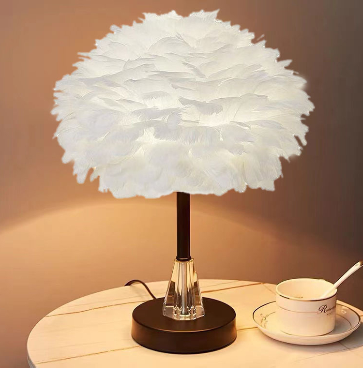 โคมไฟตั้งโต๊ะตกแต่งขนนก LED